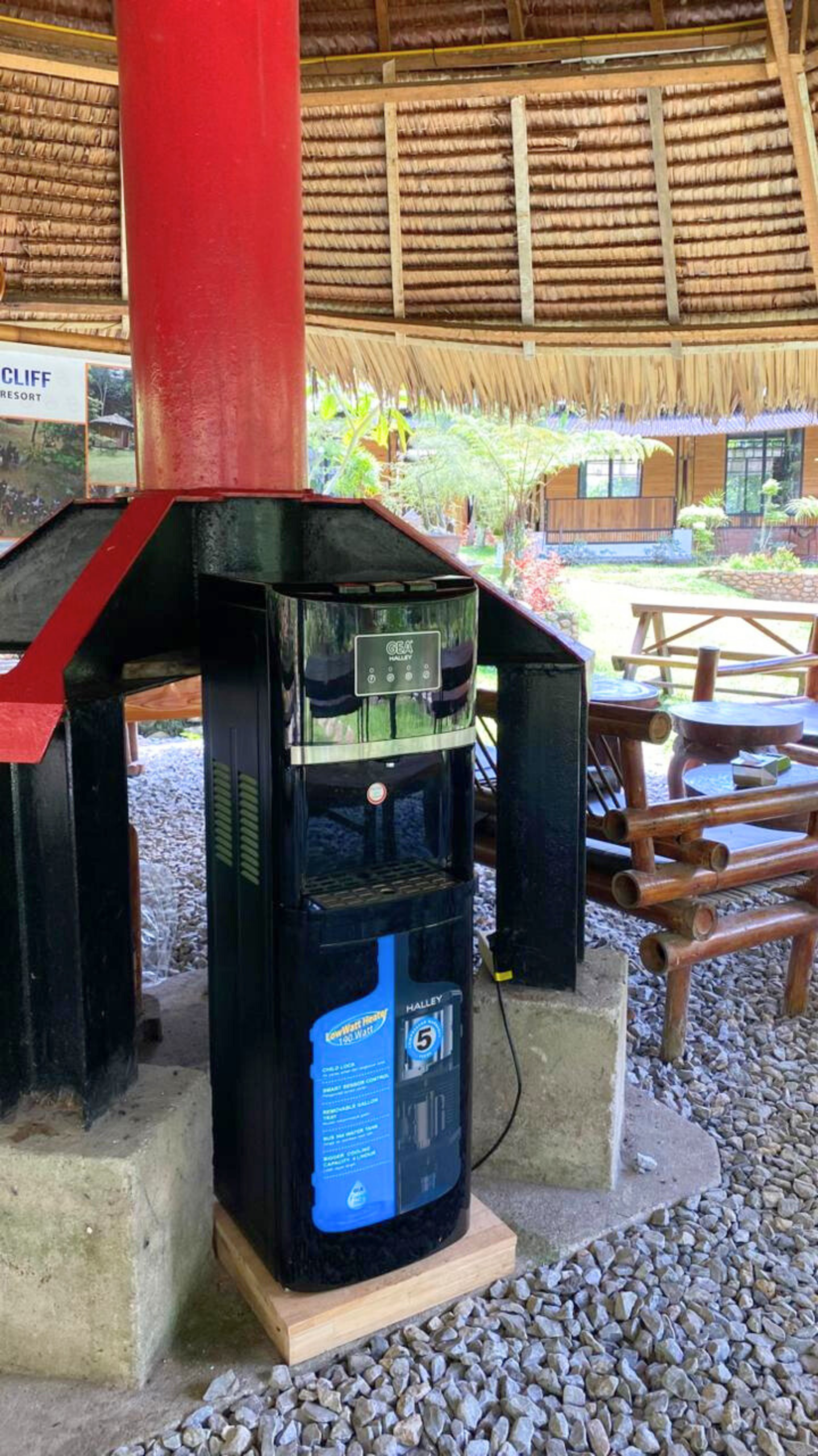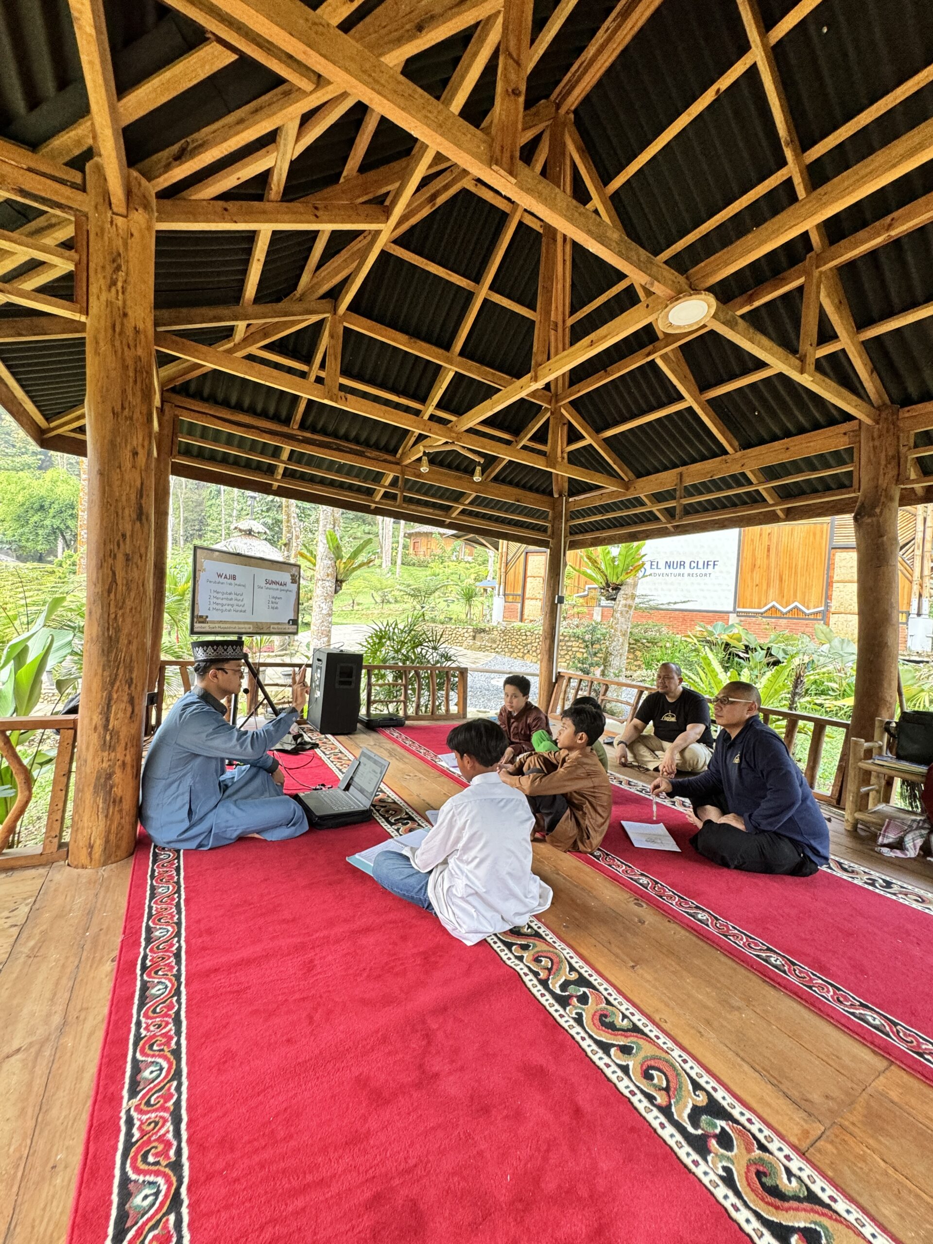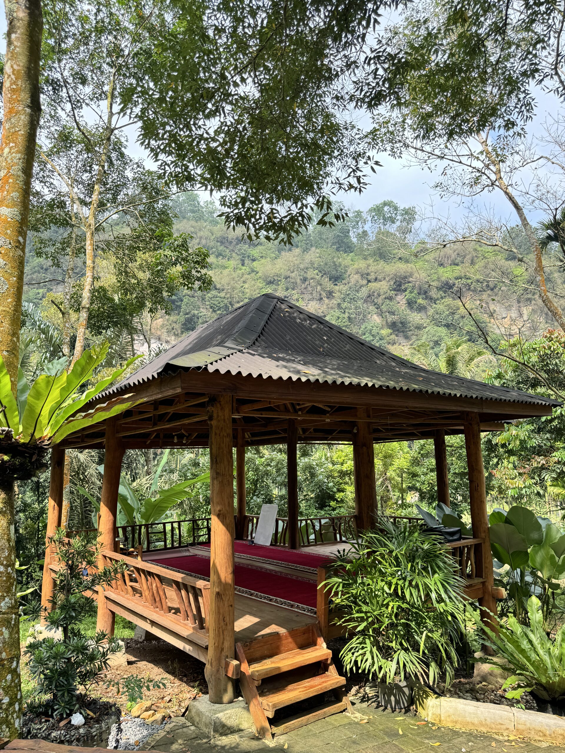 Musholla ini dirancang dengan konsep terbuka, menyatu dengan alam sekitar. Dengan atap sederhana yang melindungi dari panas dan hujan, serta ruang terbuka yang memungkinkan sirkulasi udara alami, musholla ini menghadirkan kenyamanan beribadah sekaligus keindahan suasana
