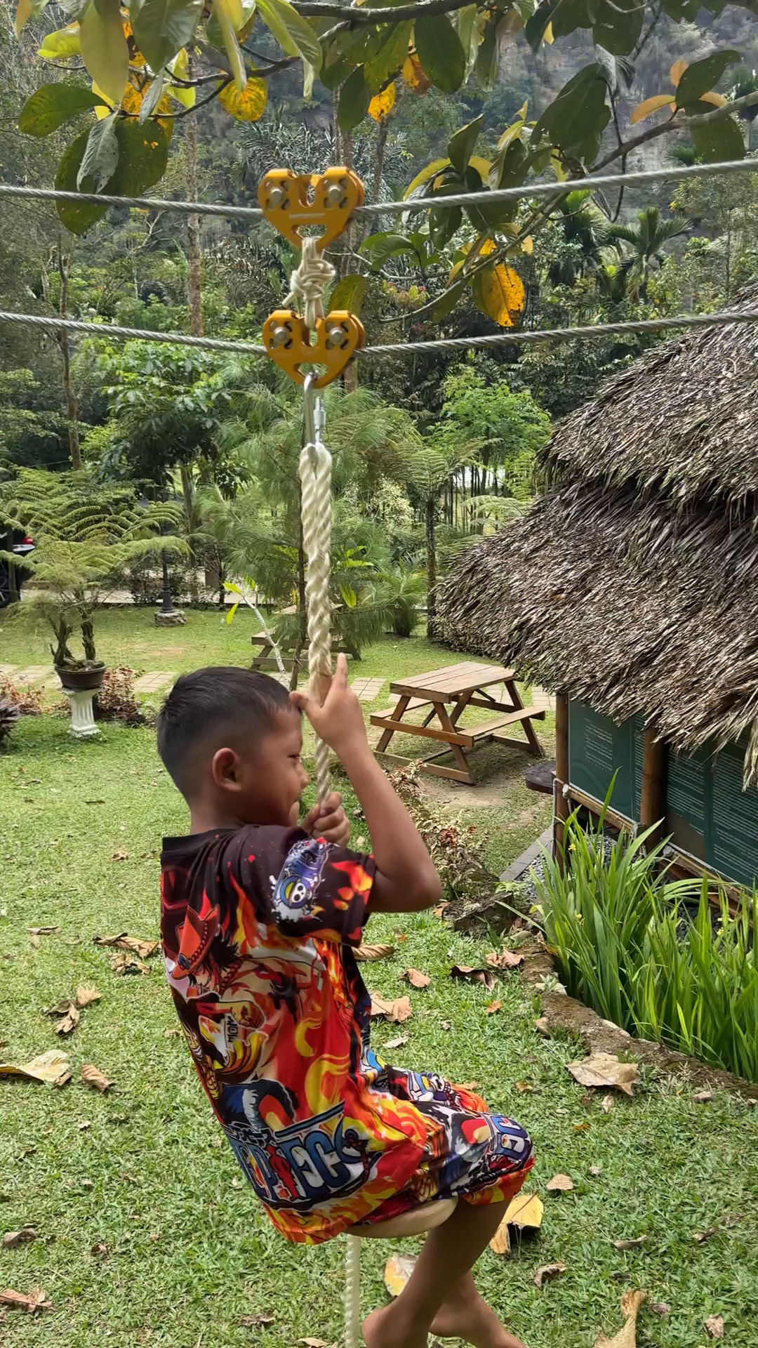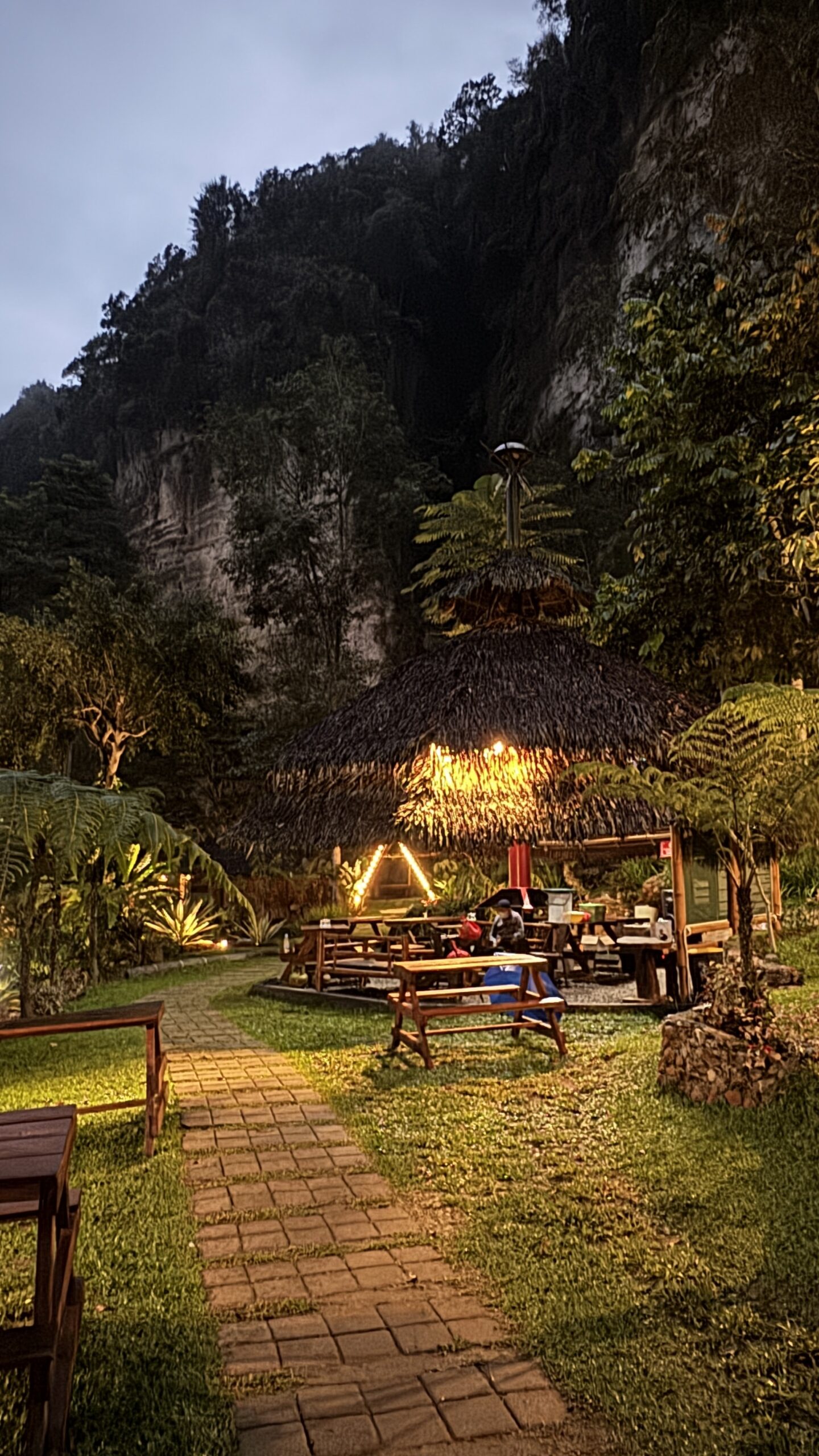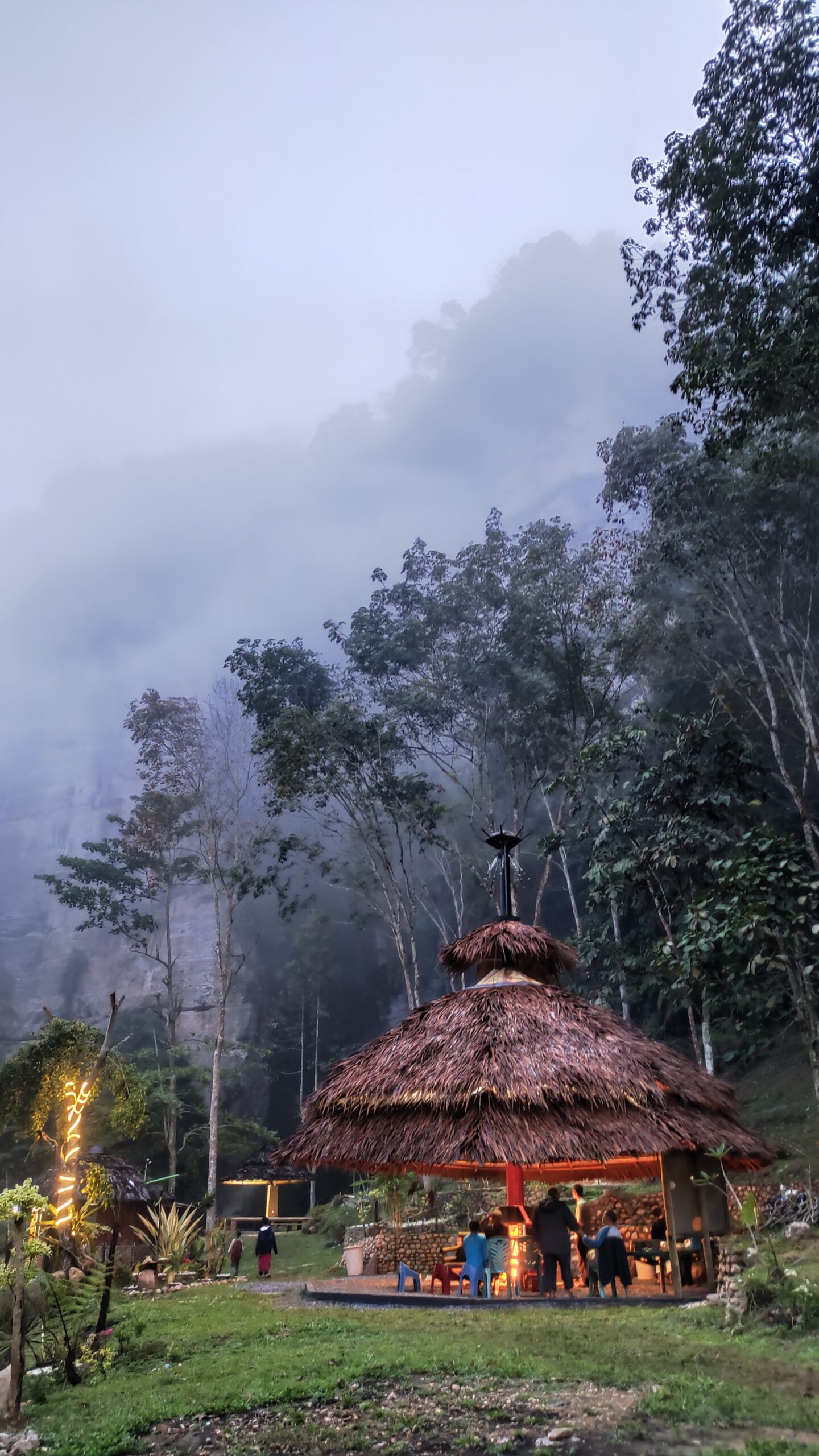 Tempat untuk bersantai, nongkrong bersama teman-teman maupun keluarga. lokasinya yang terletak air terjun membuat tempat ini terasa adem, apalagi ditambah desiran air yang menambah ketengan.