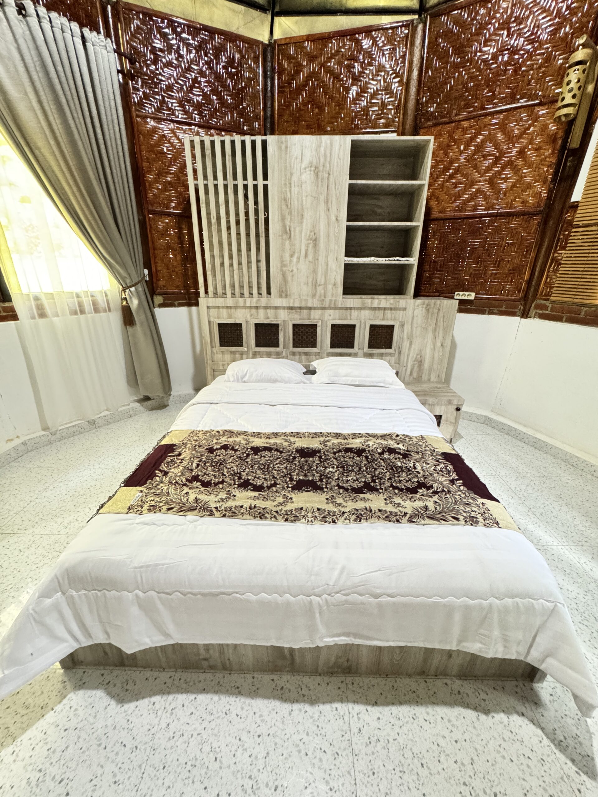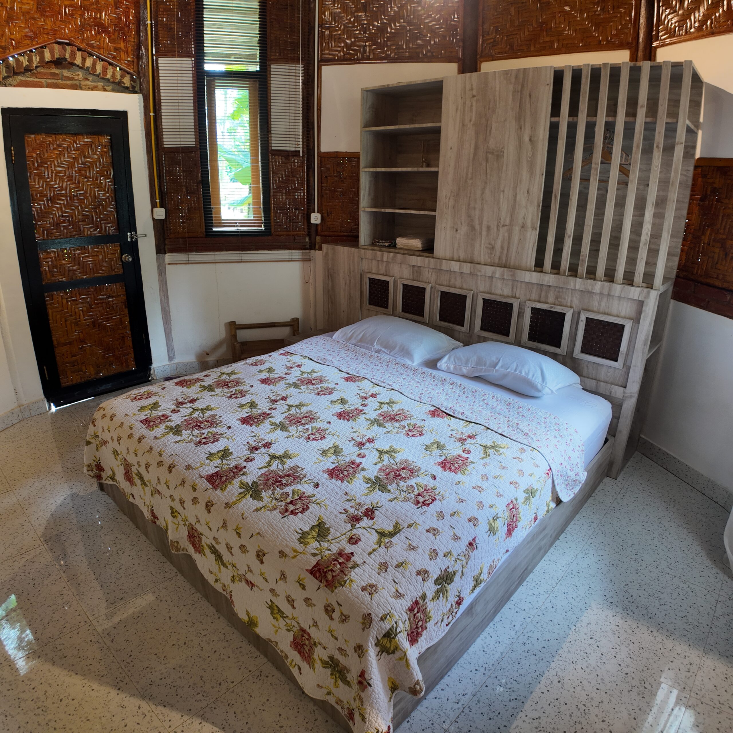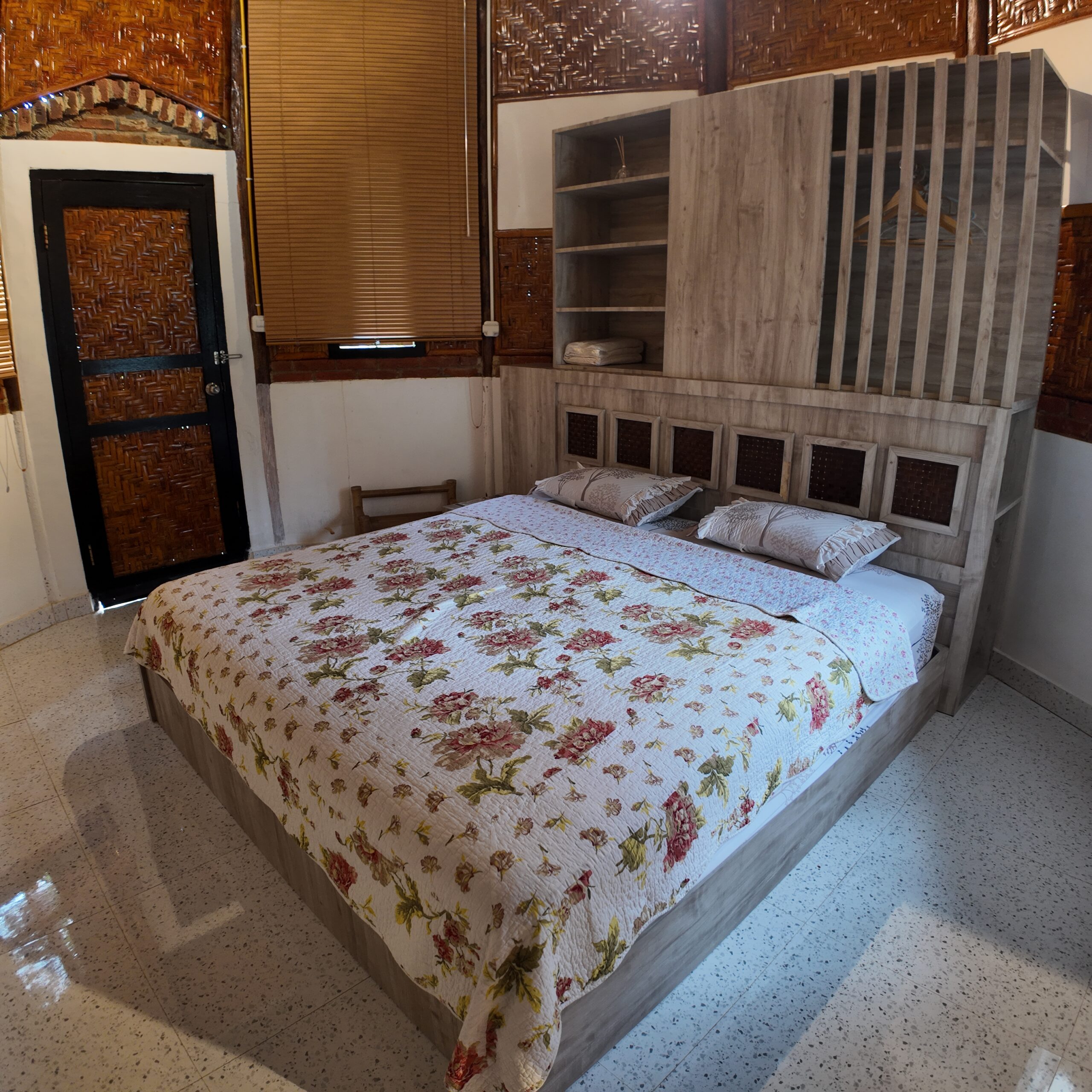 Kapasitas 2 orang dewasa, 2 breakfast, queen bed size, kipas angin, bathroom, shower, water heater, closet duduk, mineral water, teh, kopi
