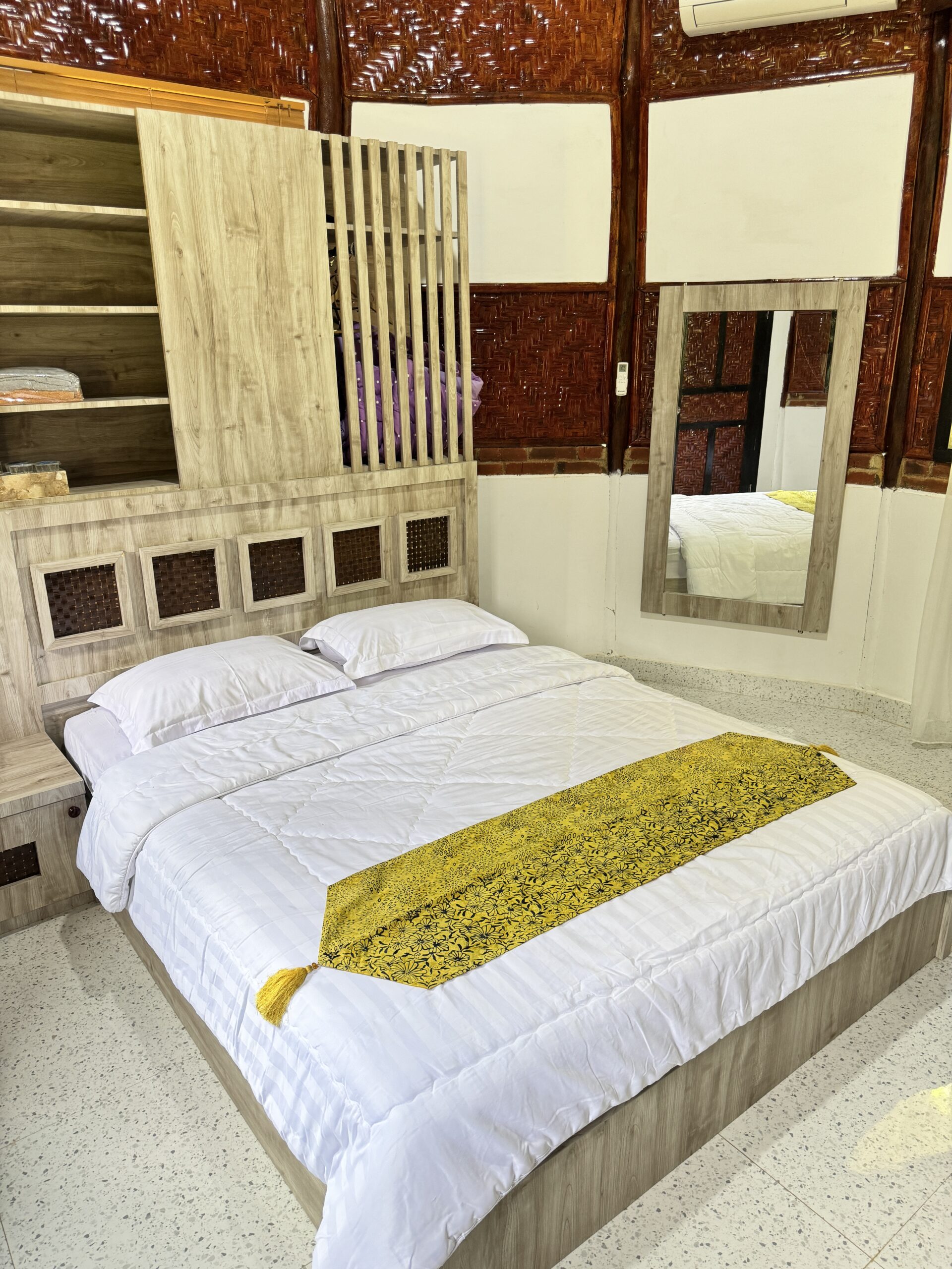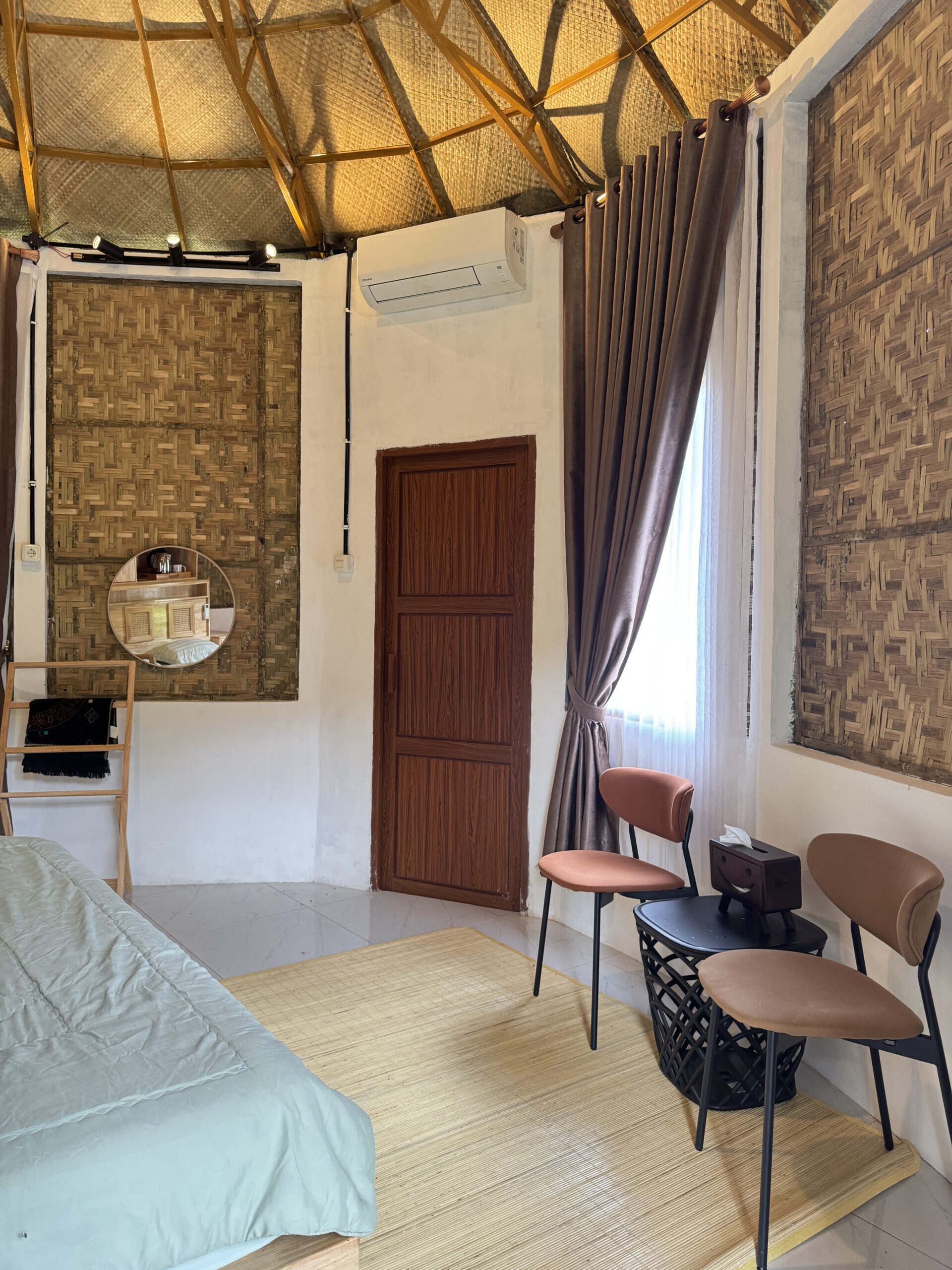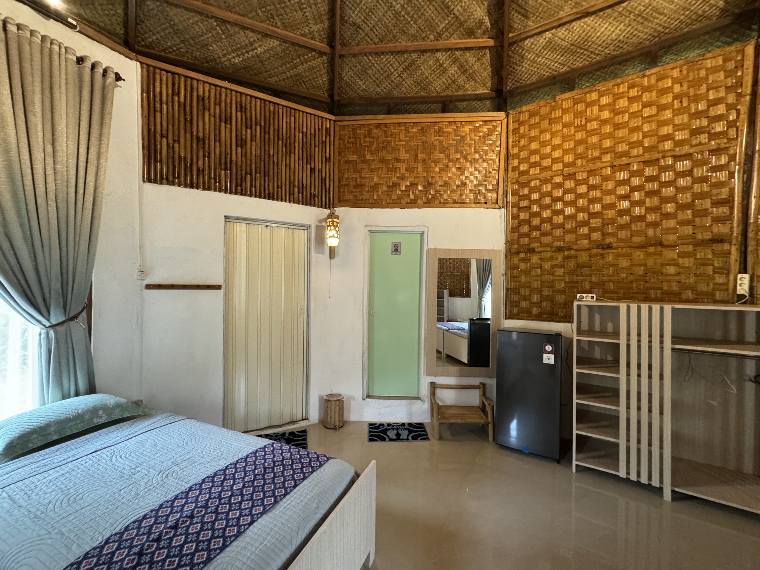 Kapasitas 2 orang dewasa, 2 breakfast, queen bed size, AC, bathroom, shower, water heater, closet duduk, mineral water, teh, kopi