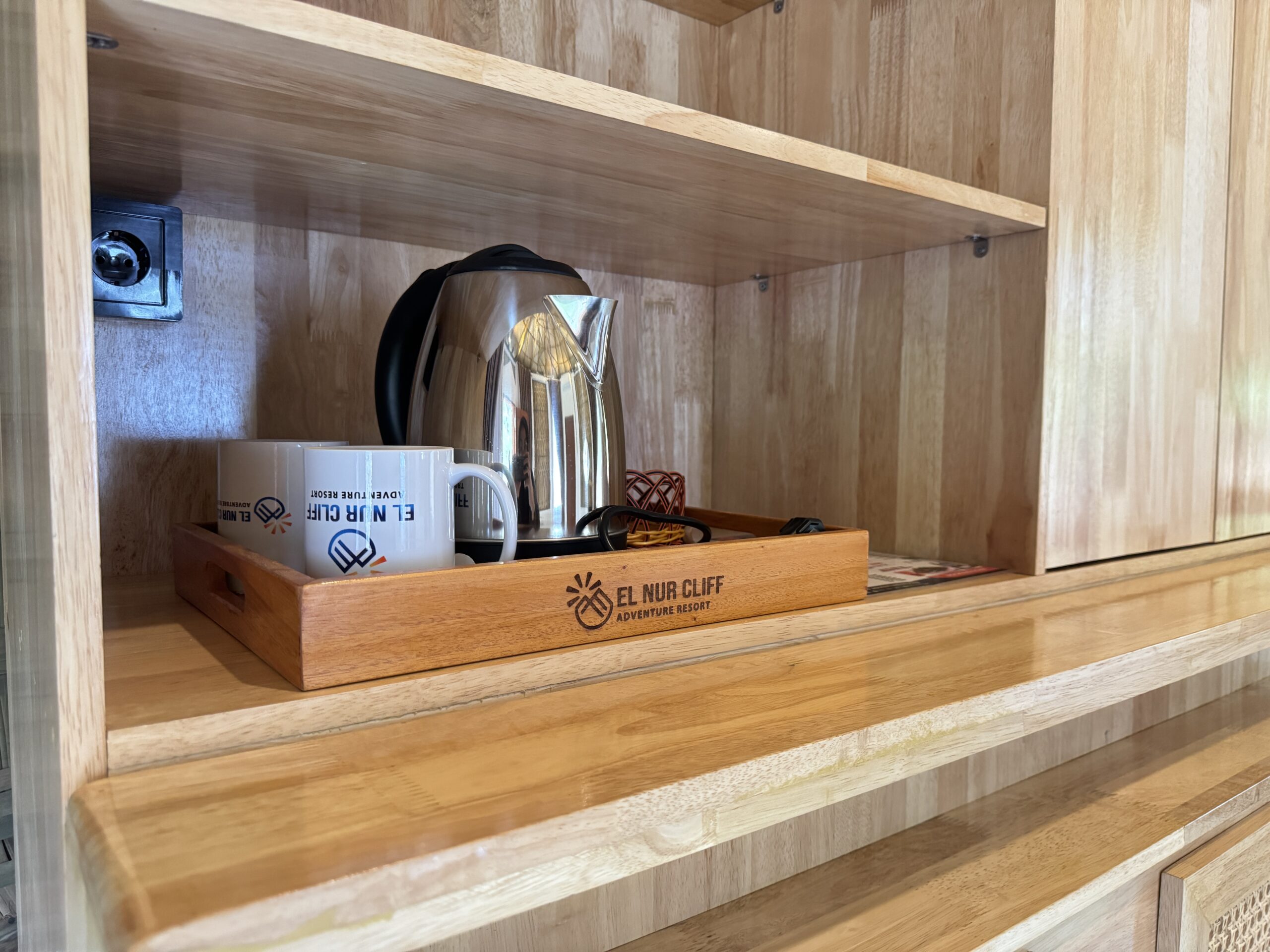Kapasitas 2 orang dewasa, 2 breakfast, super king bed size, AC, bathroom, shower, water heater, closet duduk, mineral water, teh, kopi