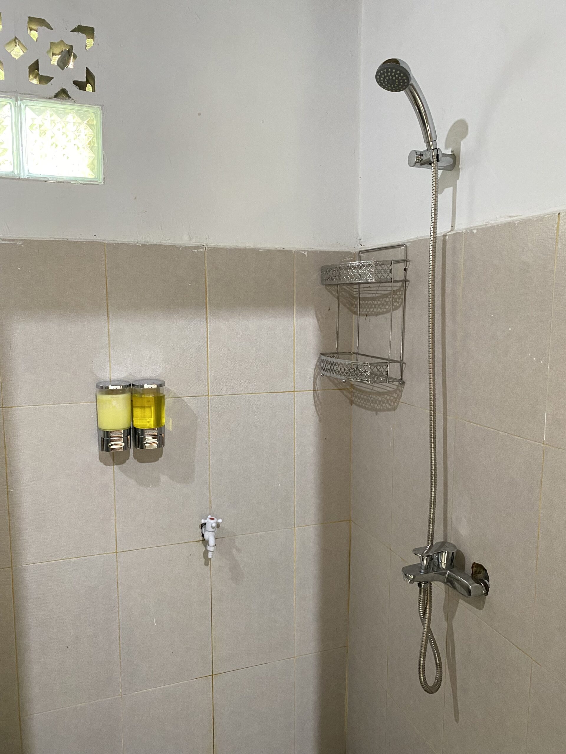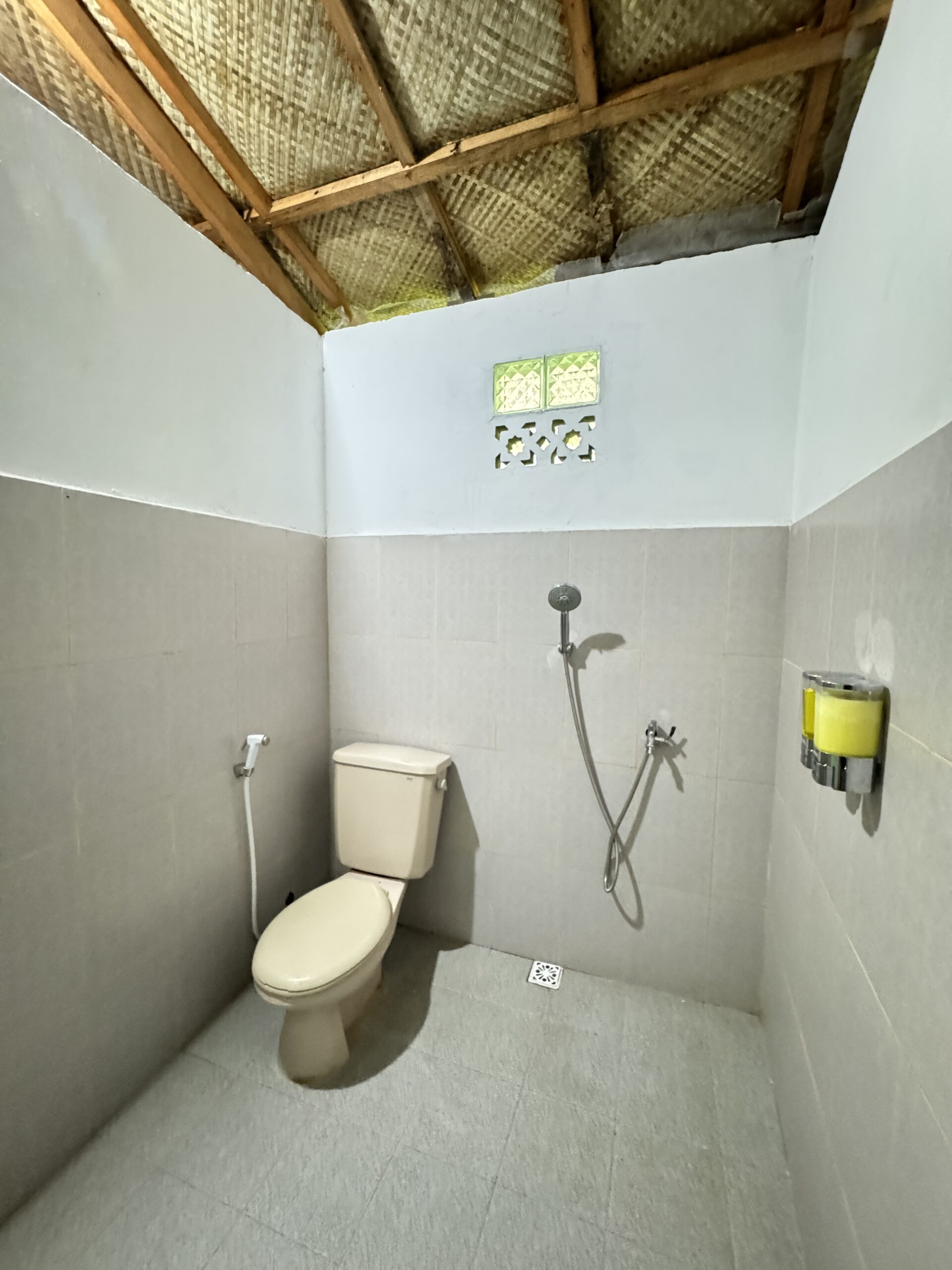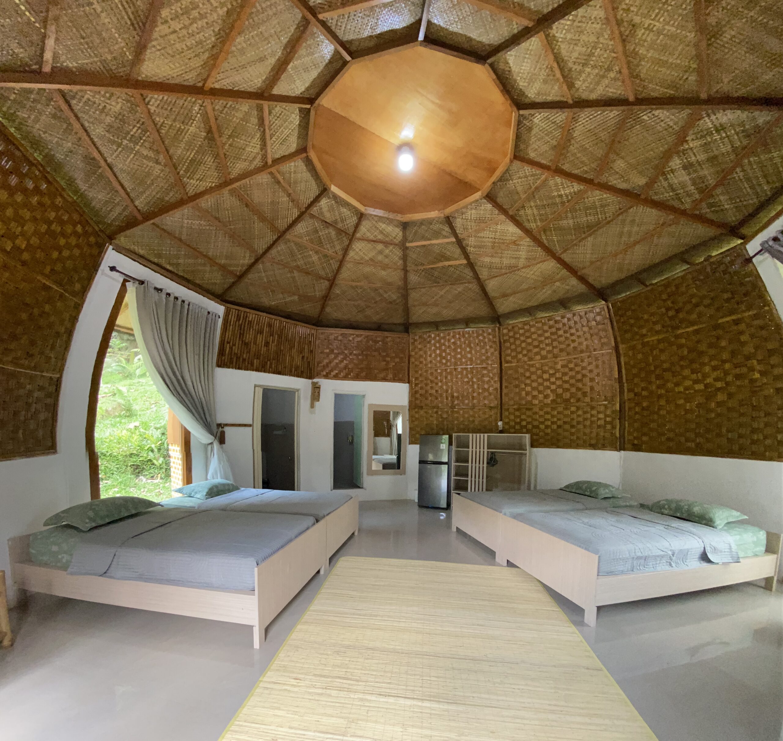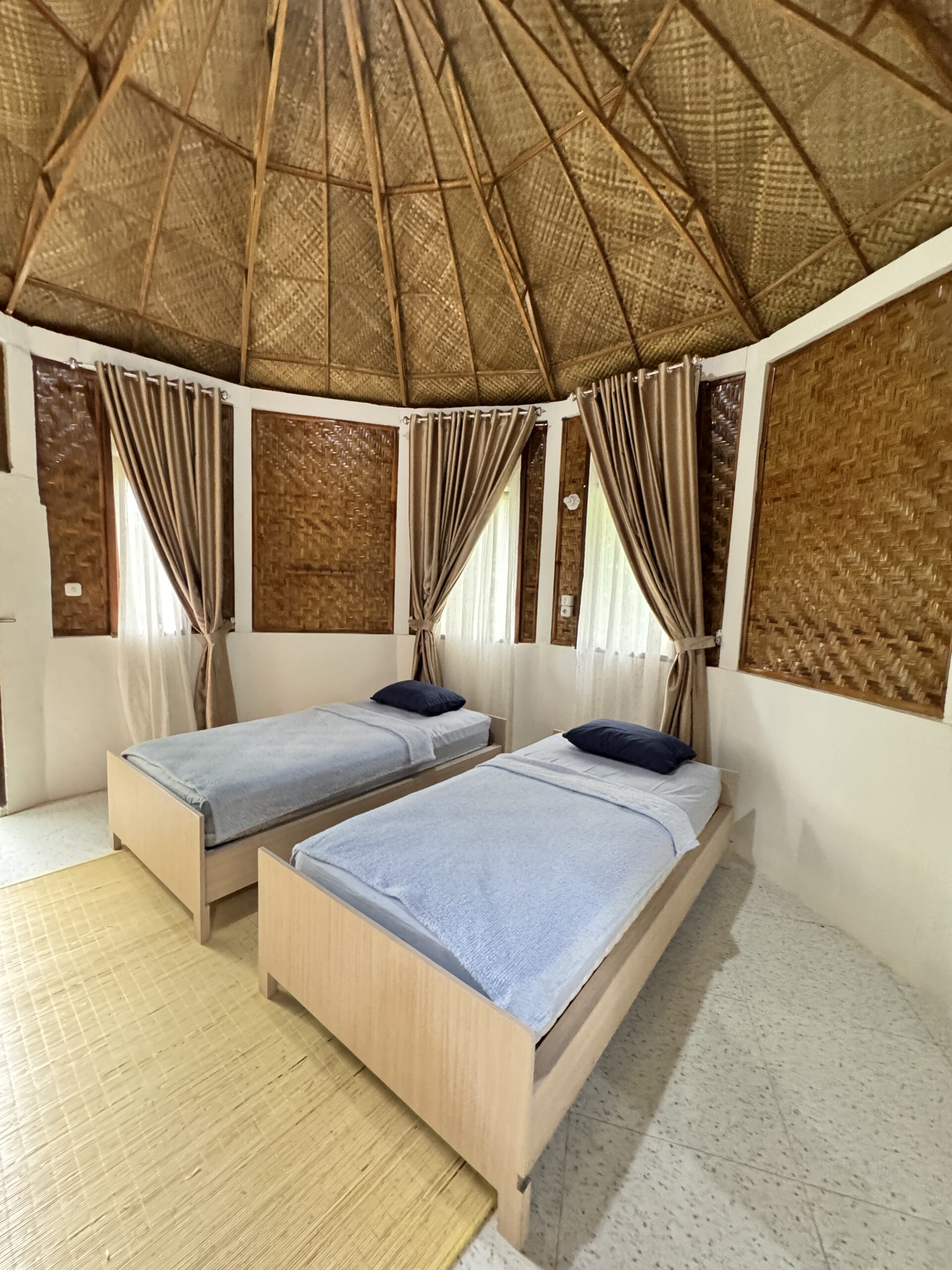 Kapasitas 4 orang dewasa, 4 breakfast, 4 single bed, AC, 2 bathroom, shower, water heater, closet duduk, mineral water, teh, kopi