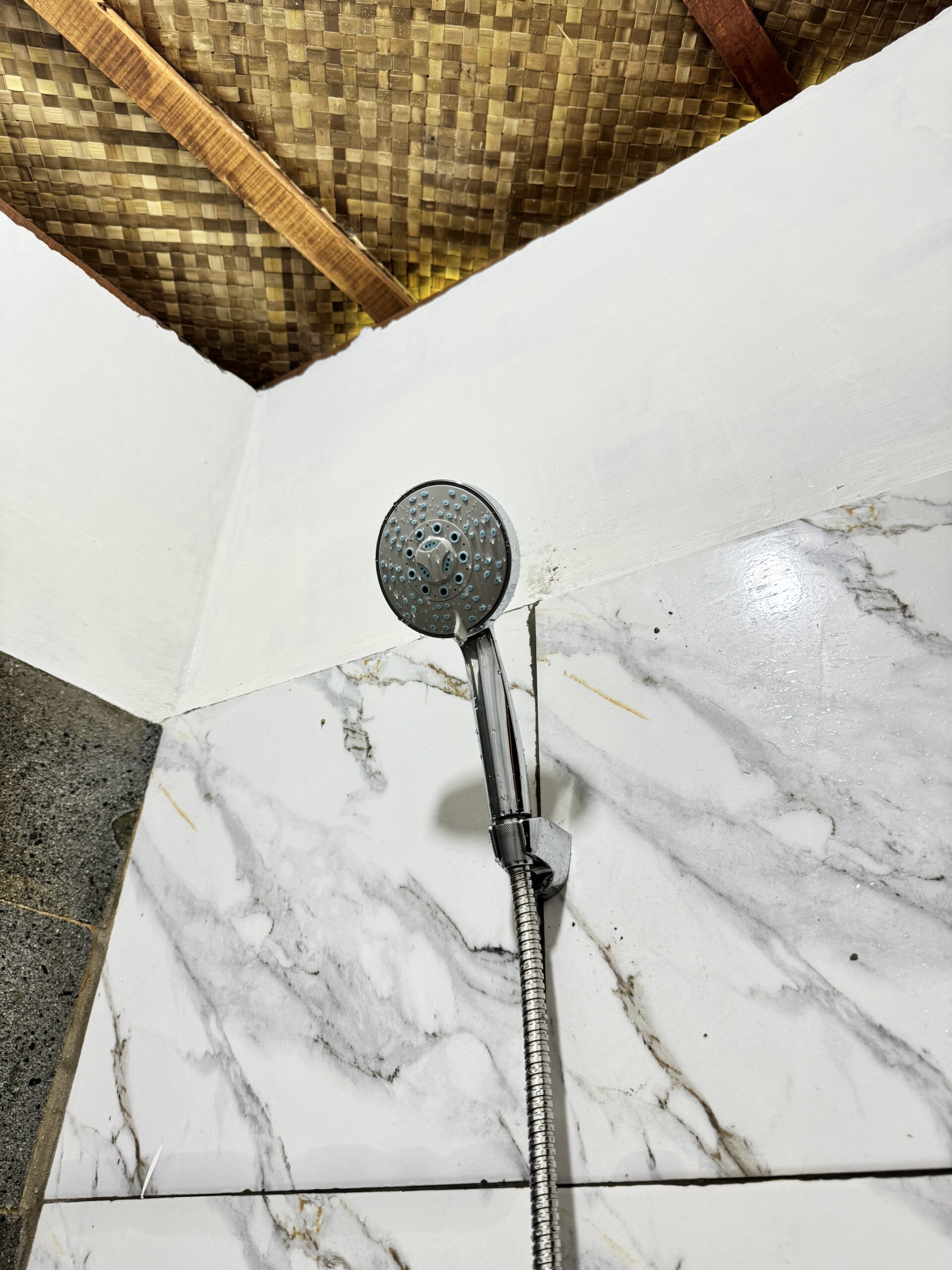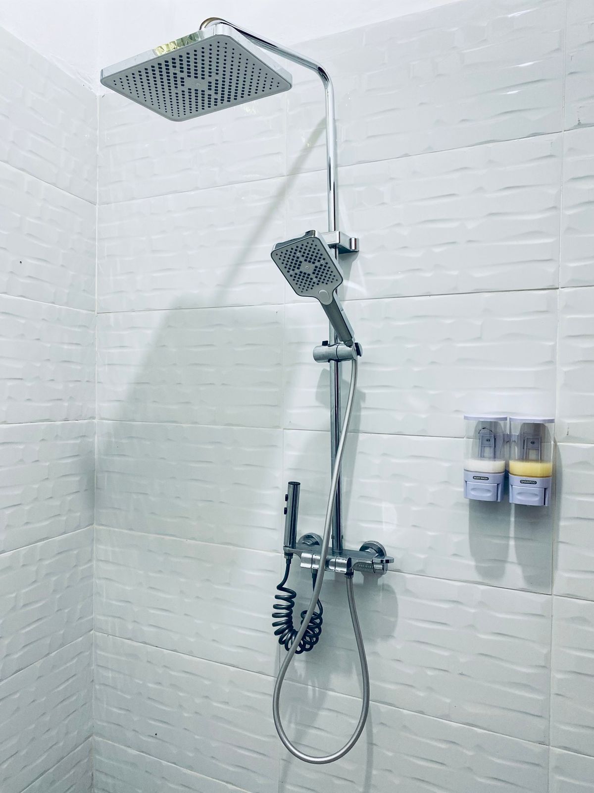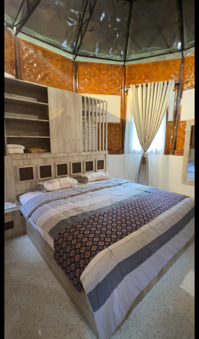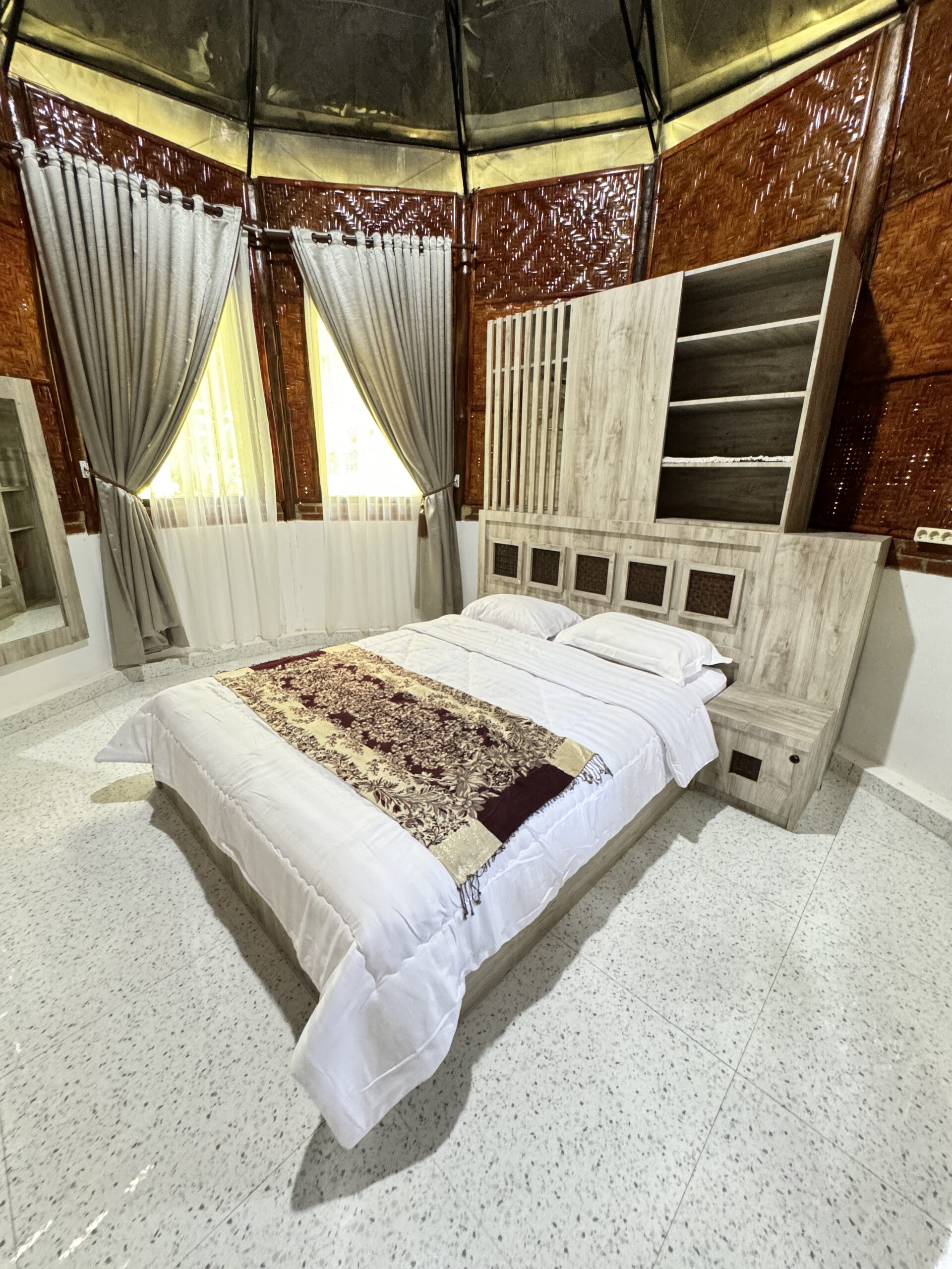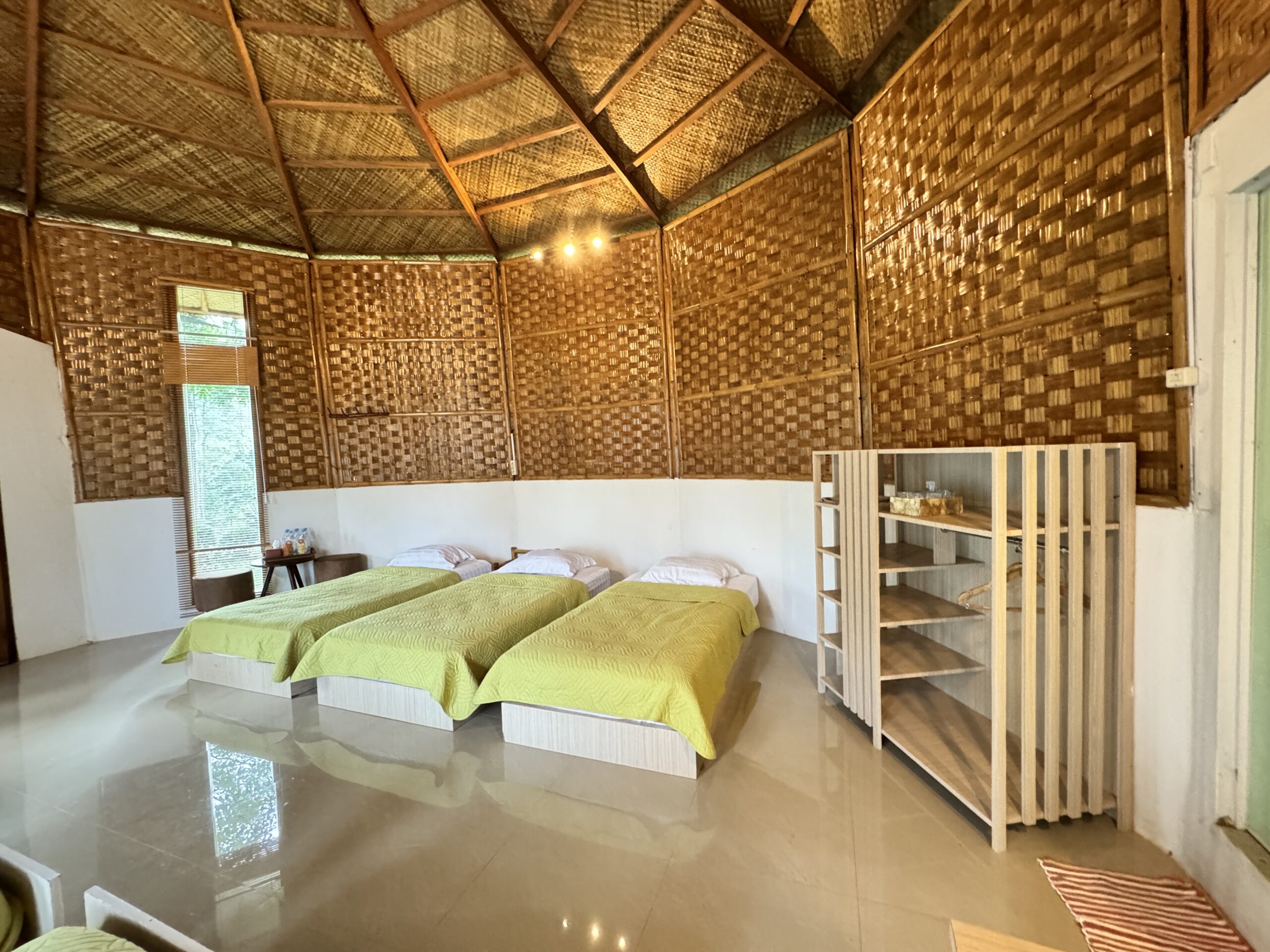 Kapasitas 4 orang dewasa, 4 breakfast, 4 single bed, AC, 2 bathroom, shower, water heater, closet duduk, mineral water, teh, kopi