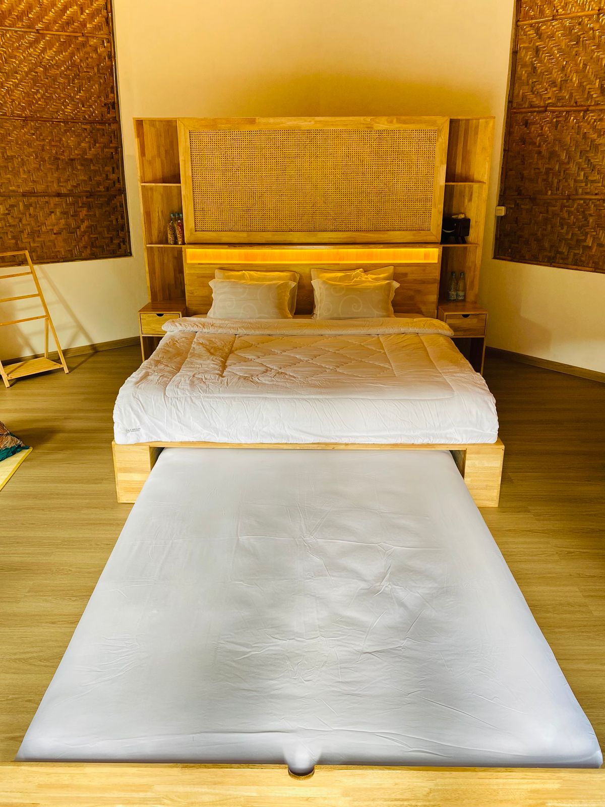 Kapasitas 4 orang dewasa, 4 breakfast, 1 single bed,1 Queen bed, Sofa Recliner, Bean Bag, AC, Kulkas, 2 bathroom, shower, water heater, closet duduk, mineral water, teh, kopi